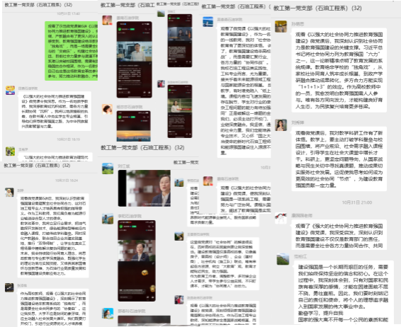 观看结束后,支部党员结合石油工程专业特色与育人实践,分享了各自的学习感悟。大家一致认为,“社会协同力”的理念对培养适应能源行业高质量发展需求的高素质人才具有极强的指导意义,具有代表性的发言如下: