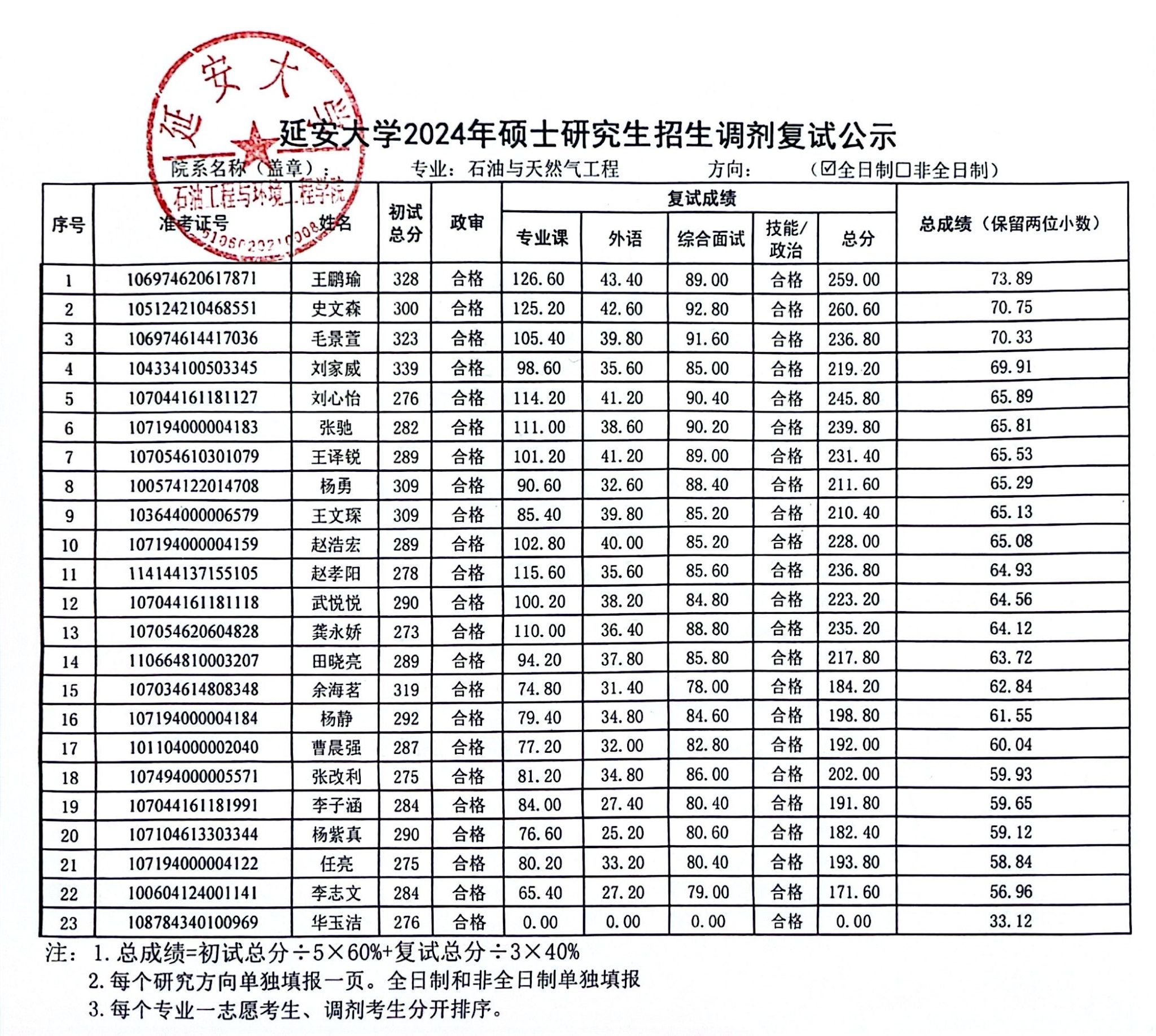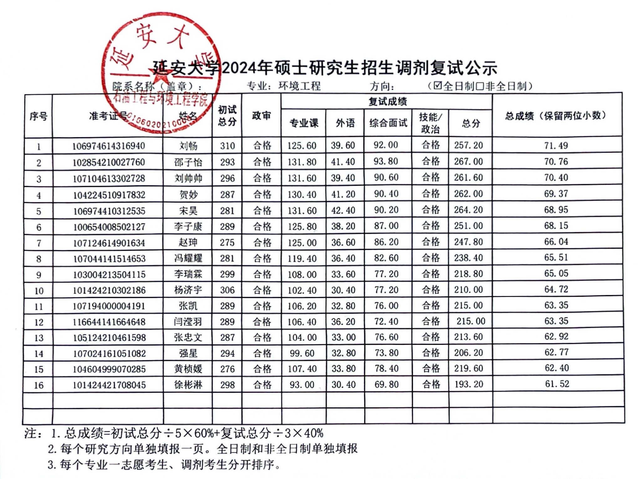 我院2024年硕士研究生招生第一批次调剂考生复试工作已经结束,经研究生院核准,现将考生成绩公示如下,公示期为10个工作日。