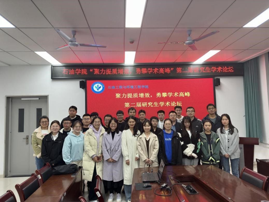 10月26日,石油学院举办了第二届“聚力提质增效,勇攀学术高峰”研究生学术论坛,参加论坛的有院长王记江、张永涛副教授、王帅系主任、吴彦君高级工程师、马灵飞博士及学院全体研究生,论坛由科研秘书韩进主持。
